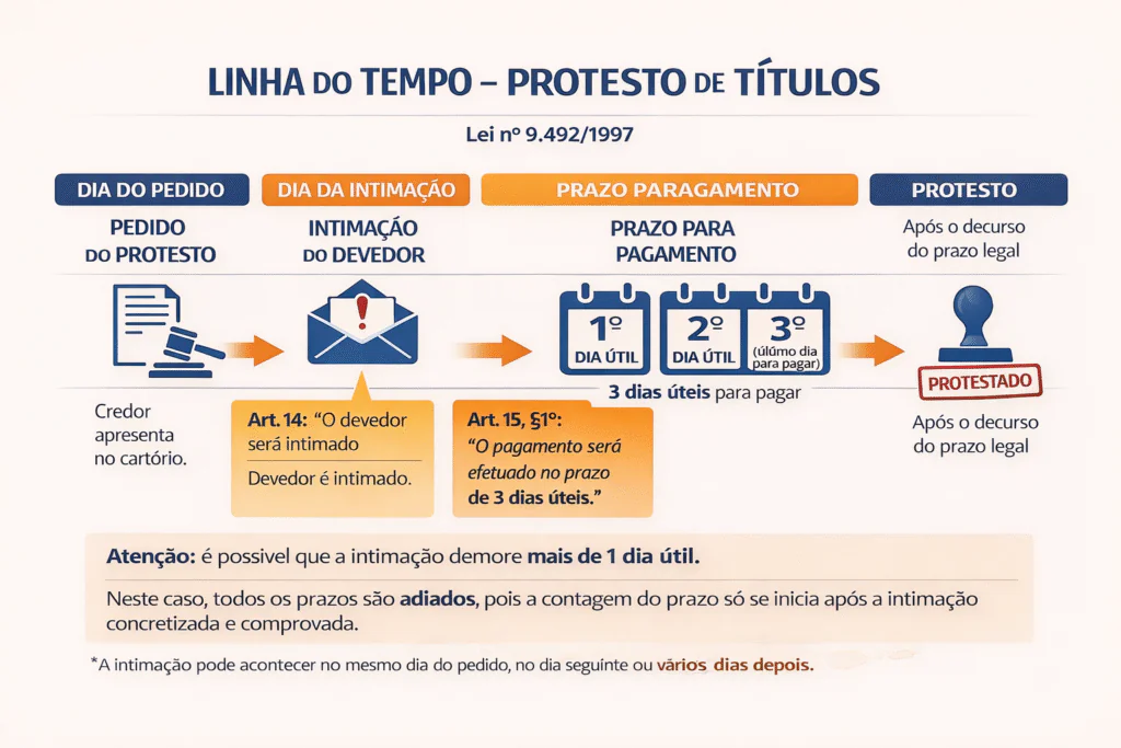 Mas atenção: o protesto não acontece no mesmo dia em que o credor pede. Existe um procedimento legal obrigatório.